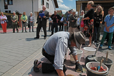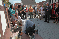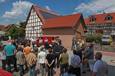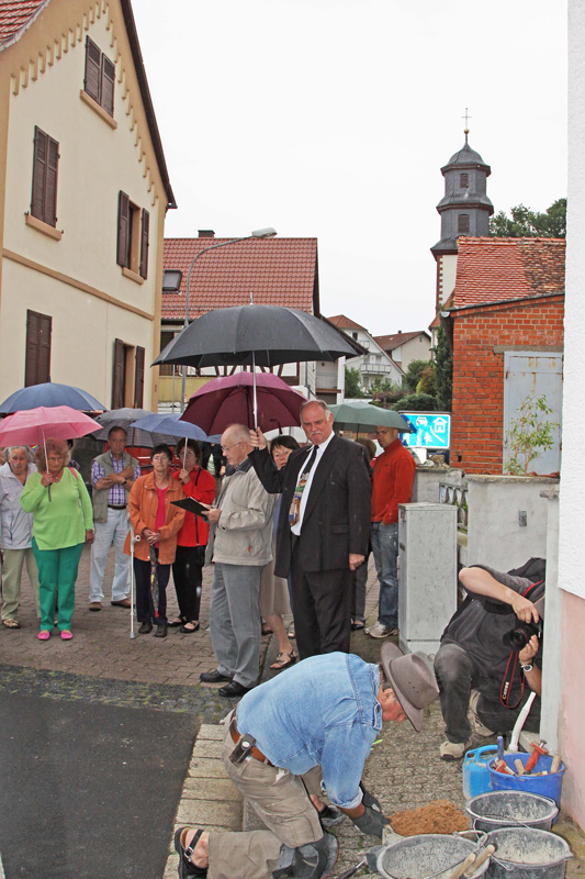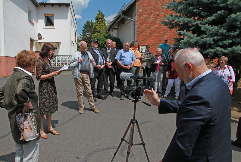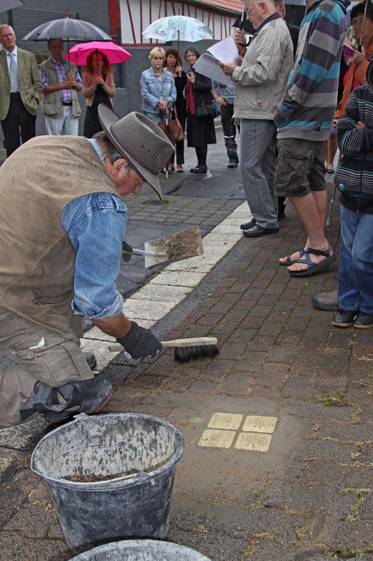 | Am 2. Juli 2012 wurden in Hüttengesäß und Altwiedermus die ersten Stolpersteine vom Künstler Gunter Demnig verlegt - zum Gedenken der ehemaligen jüdischen Bevölkerung, die Haus an Haus mit unseren Urgroßeltern lebten, die Geschäfte betrieben und sogar im ersten Weltkrieg für Deutschland kämpften. Die zweite Verlegung von neun Steinen fand am 1. Juni 2014 statt. Träger der Einrichtung "Stolpersteine" ist eine Interessengemeinschaft und die Gemeinde Ronneburg www.ronneburg.eu Ansprechpartner und